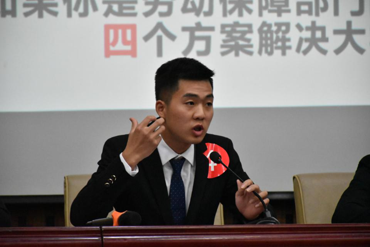 决赛由面试模拟(含自我介绍)、无领导小组讨论两个环节组成,在第一环节的面试模拟中,孙威同学就大学四年的工作学习及生活进行了简单的自我介绍。在情景模拟答题环节,他从各个方面分析题目,条理清晰的按点回答,赢得了在场评委及同学们热烈的掌声,并以12:6的成绩进入了无领导小组讨论环节。