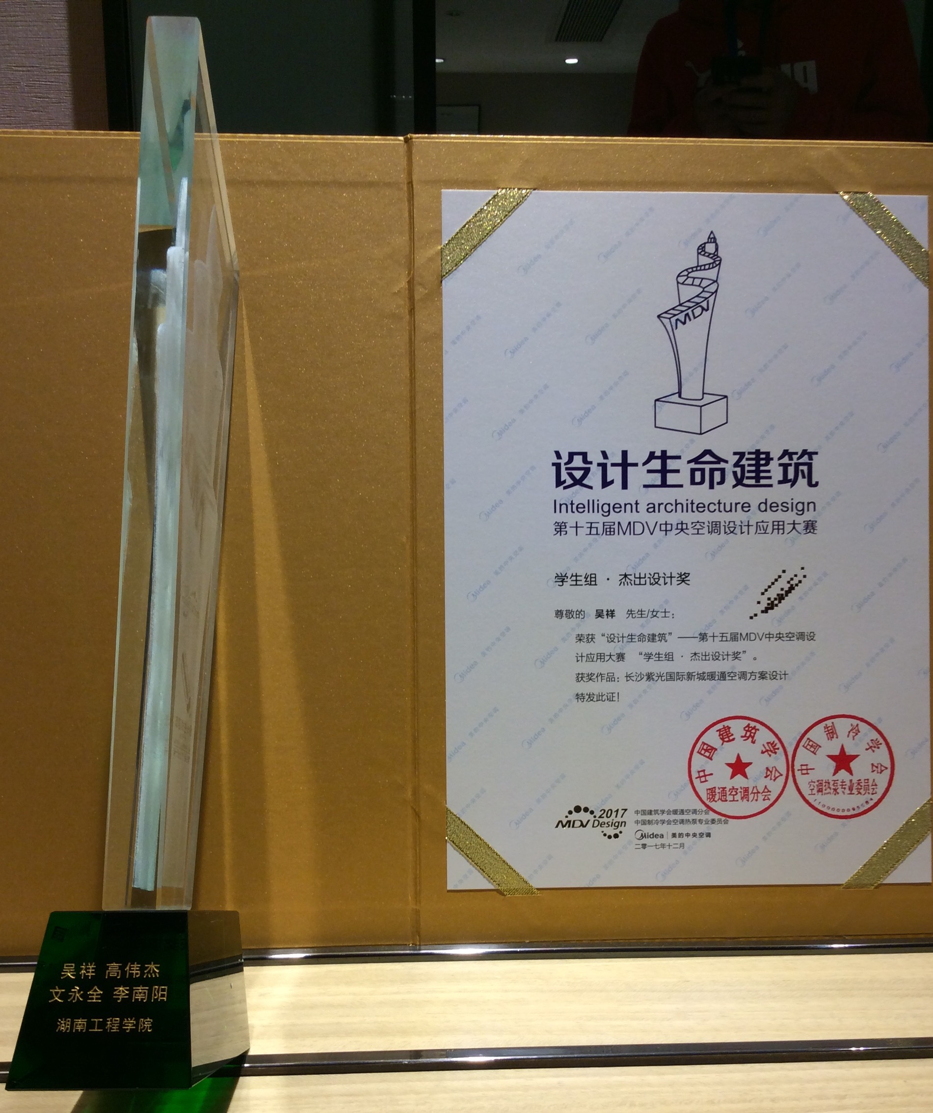 MDV中央空调设计应用大赛创立于2002年,由中国建筑学会暖通空调分会、中国制冷学会空调热泵专业委员会主办,是中国暖通空调行业成立时间最早、覆盖面最广、影响力最大的赛事。大赛包括专业组和员工组,员工组竞赛的目的是加深员工对中央空调技术的了解,丰富校园科技活动,促进应用型工程设计人才的培养。本届大赛以“设计生命建筑”为主题,共收到全国100余所高校提交的412份员工作品,最终评出1项设计达人奖、15项杰出设计奖、40项优秀设计奖。此次公司员工获奖是对建筑环境与能源应用工程专业教学和人才培养质量的肯定。