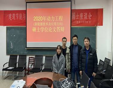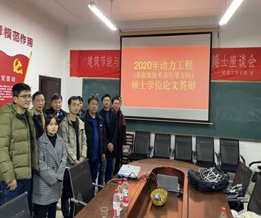 12月18日下午,球速体育在院会议室举行2020届硕士学位论文答辩会。共有4位动力工程新能源技术及应用方向的研究生参加答辩。这4位同学的学位论文依托绿色低碳建筑节能与材料技术湖南省工程研究中心及多项省级科研项目完成,研究内容涉及建筑节能和可再生能源利用技术,共发表论文7篇(其中SCI论文3篇),获得实用新型专利授权5项,申请发明专利9项。