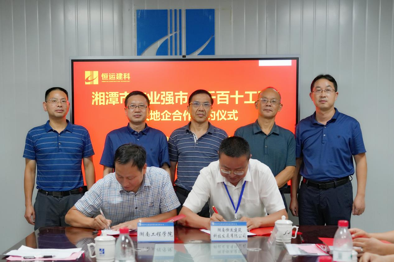 为充分发挥公司和企业在人才资源、科学研究和生产实践的优势,推动产学研合作与科技成果转化,9月8日,公司党委委员、副董事长罗毅平、魏克湘一行赴湖南恒运建筑科技发展有限公司参加湘潭市产业强市“千百十”工程校地企合作签约仪式,公司党委书记张宏、经理李小华参加此次签约仪式。